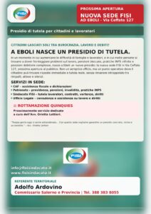 A quasi tre anni dalla prematura scomparsa del fondatore del Sindacato F.I.S.I., Rolando Scotillo e, in un momento storico in cui aumentano le criticità sociali e le difficoltà lavorative per i cittadini, riapre la storica sede di Eboli, nel salernitano, in via Ceffato 127.